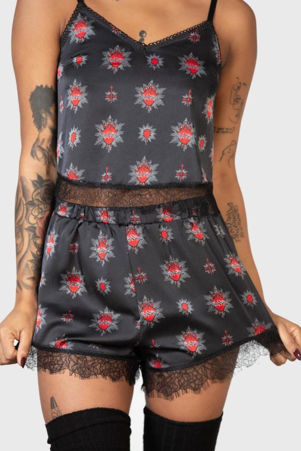 – Statement, all over sacred heart and cross inspired design.