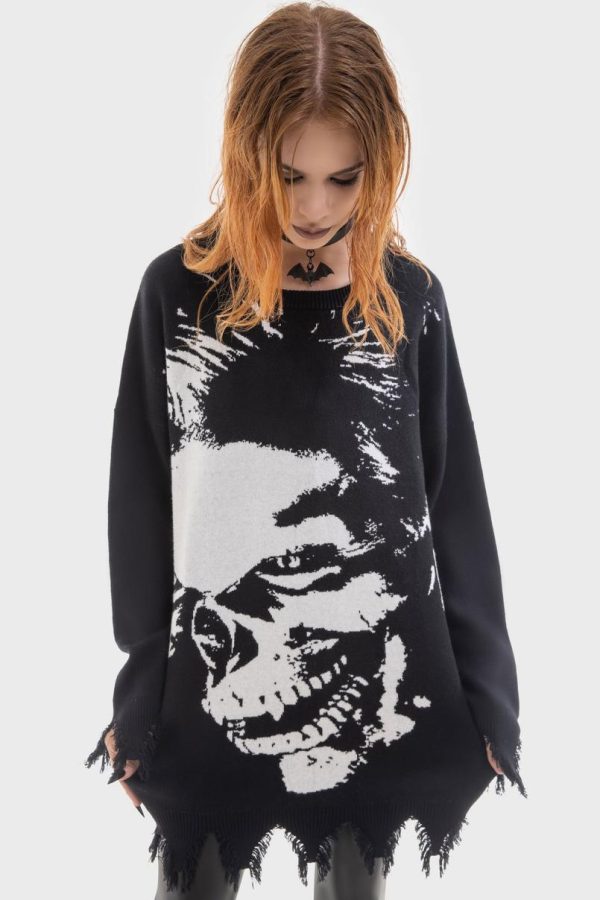 – Long, distressed cuff sleeves.