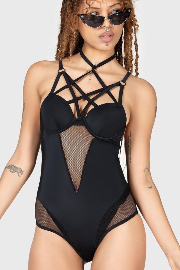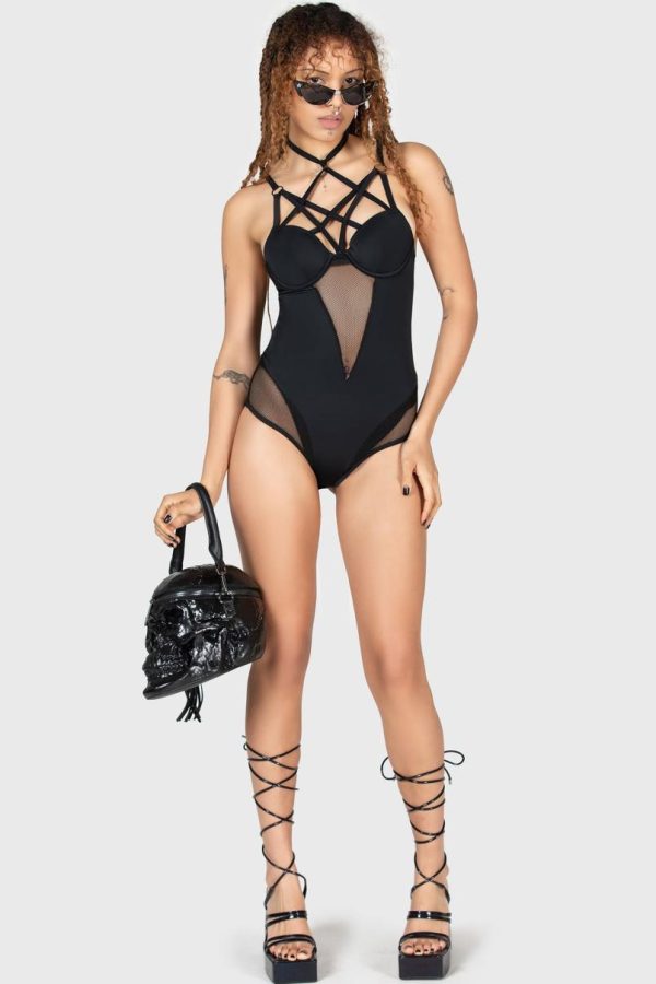 With KILLSTAR branding, Fabric 1: 91% Polyester 9%Elastane Fabric 2: 81% Polyamide 19% Elastane Fabric 3: 96% Polyester 4% Elastane.